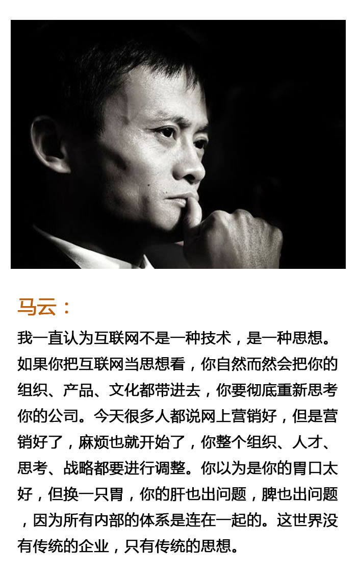 互联网已不仅仅是一种工具,而是一种思想!这种变化在近几年尤为明显,对此,互联网大佬们也各有想法!下面一起来看看大佬们是如何看待互联网思维的吧!