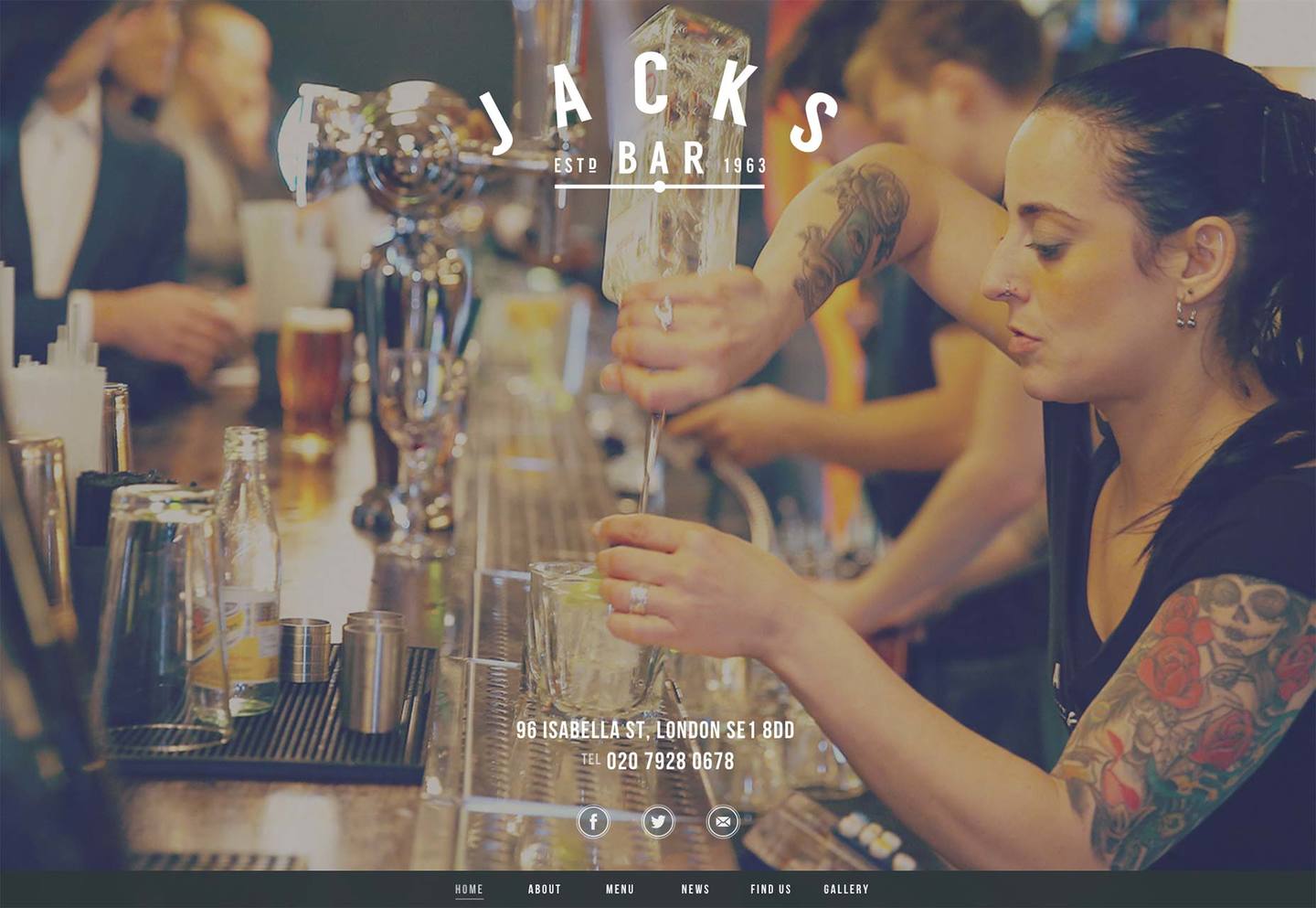 是否有人曾戳着你的屏幕说“少即是多?”越来越多的网站开始精简网站上页面的数量,使用单页设计的网站 已经不在少数,即是相对传统的网站也过度到了 简化后的多页式页面架构。促成这一趋势的原因来自两个方面:第一,用户喜欢简单,越简单用户越容易找到它们想要的内容,这自然也对网站越好;第二,据统 计,移动端的流量占据了网站流量来源的4成,对于移动端越友好,自然也越有利于网站和网站的业务。如果你能在餐厅的移动端网页上订餐,何必费劲巴拉地找电 脑来下单呢?成交额难道不会妥妥地上升么?下面这个高大上的单页网站属于伦敦的Jacks Bar,这是一家酒吧餐厅二合一的餐饮机构,在移动端浏览成为用户首选的今天,滚动比点击更加有用。